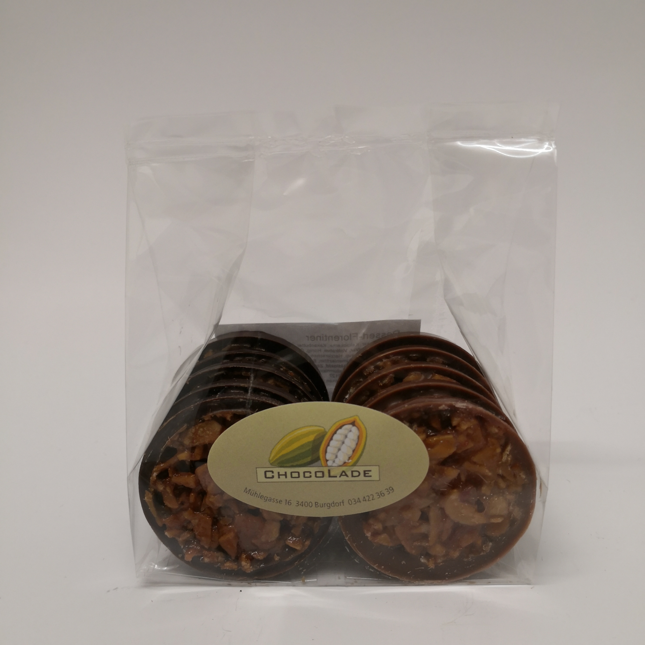 Knusprige Florentinerli auf Couvertureplättli, 38 mm